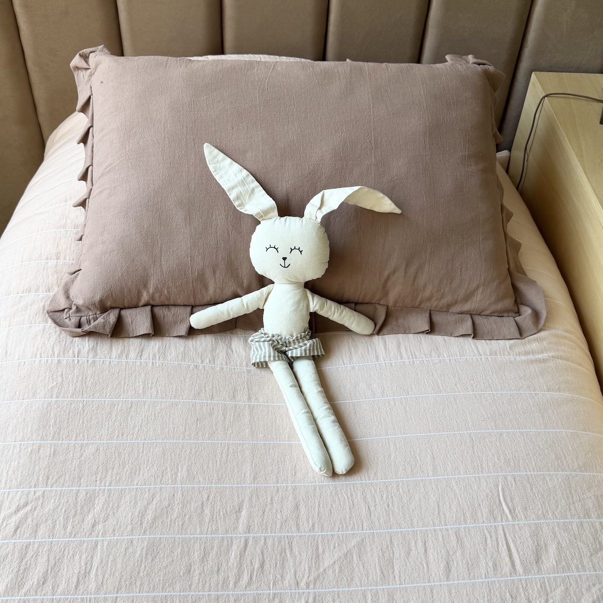 Acolchado tussor rosa con lineas blancas, 100% algodón con dorso crudo liso – Relleno con guata!!