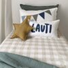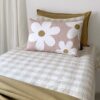 Acolchado realizado en tussor 100% algodón, con cuadros arena de un lado y reverso color natural.