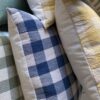 Almohadón íntegramente confeccionado en 100% algodón. Frente a cuadros de color, crudo liso en el dorso.