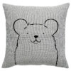 Almohadon Pompón – Realizados en tela Tusor y estampados con serigrafía color negro o gris.