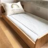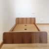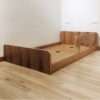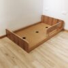 Cama al piso, realizada en madera paraiso enchapado, con posibilidad de agregarle una baranda (no incluida en el precio).