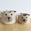 Cesto con carita de oso, confeccionado completamente a mano con yute jaspeado con algodón, por lo que sus medidas pueden variar sutilmente.