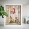 Ilustración pop up realizada en madera natural, laminada en guatambú. Impresa con tintas ecológicas,no tóxicas.