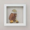 Ilustración pop up realizada en madera natural, laminada en guatambú, impresa con tintas ecológicas, no tóxicas.