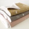 Manta naturaleza estampada en tela 100% algodón, con reverso de corderito color natural.
