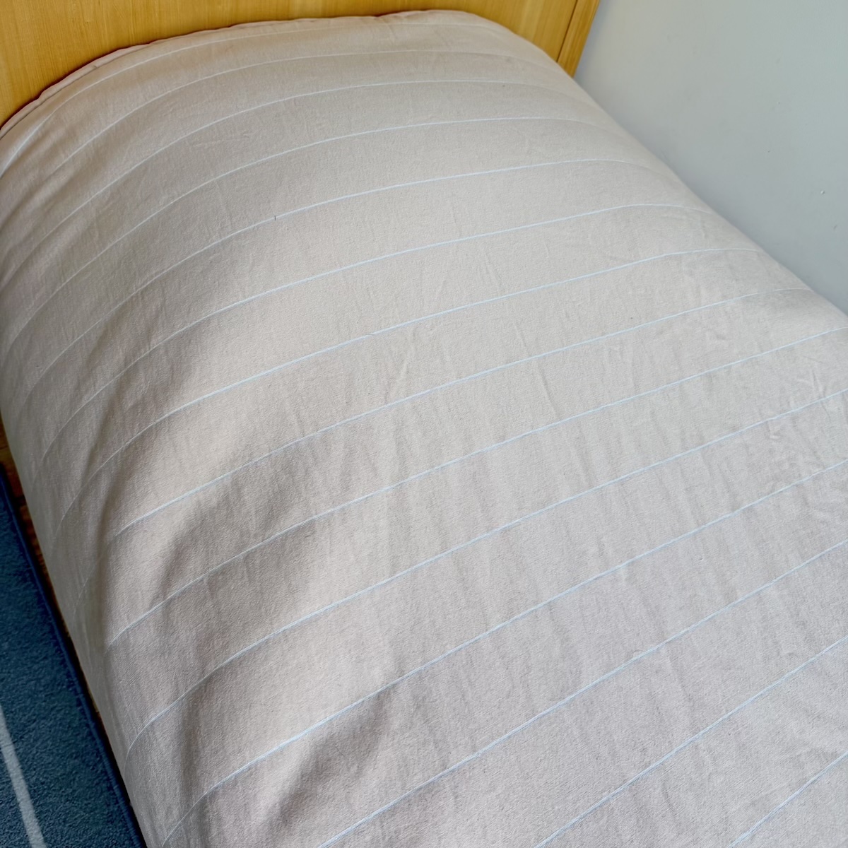Acolchado tussor rosa con lineas blancas, 100% algodón con dorso crudo liso – Relleno con guata!!