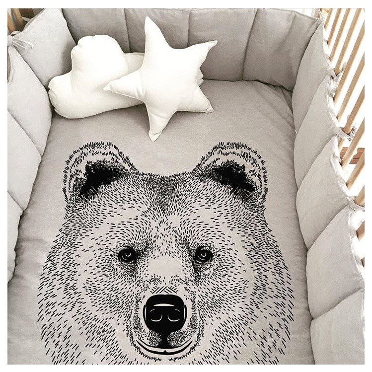 Acolchado realizado en tela panamá crudo, blanco o gris, estampado con serigrafía en color negro, gris o blanco.