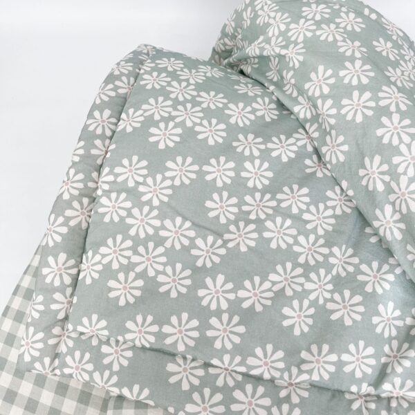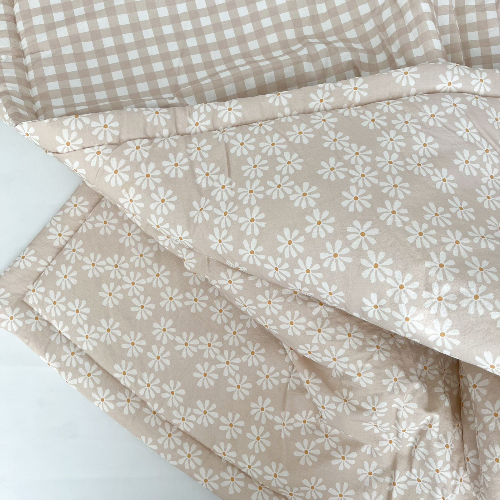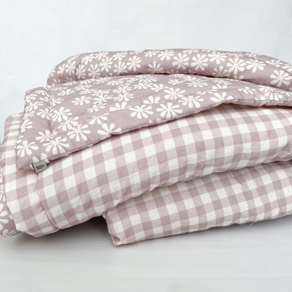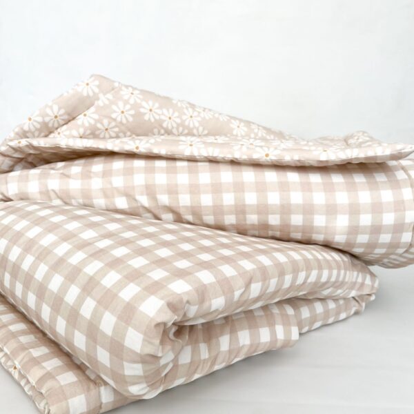 Acolchado reversible: de una lado vichy, del otro margaritas del mismo tono! Relleno de guata.