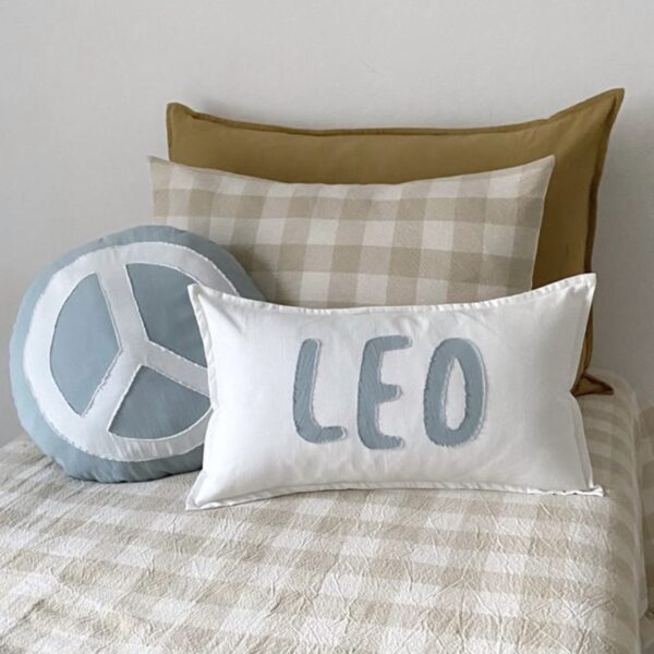 Almohadón íntegramente confeccionado en 100% algodón. Frente a cuadros de color, crudo liso en el dorso.