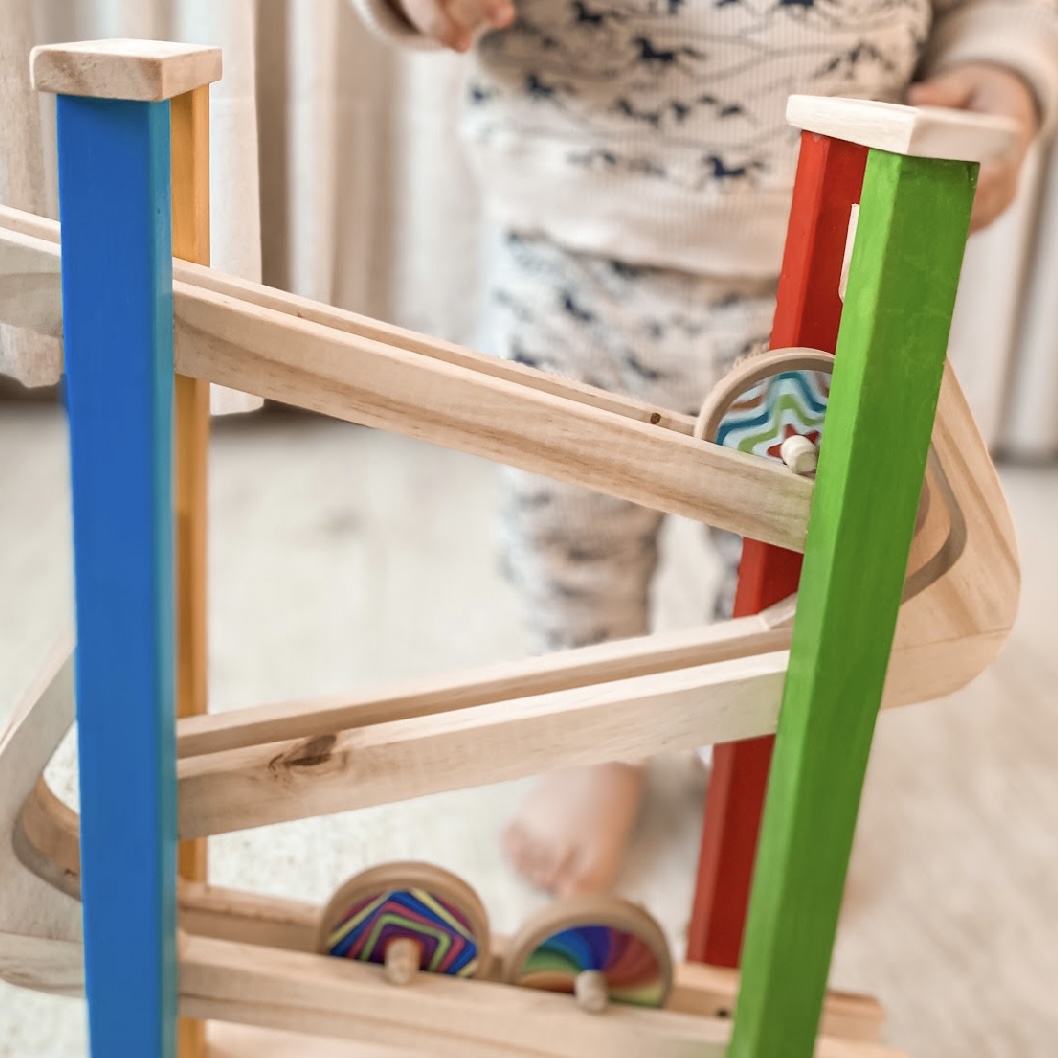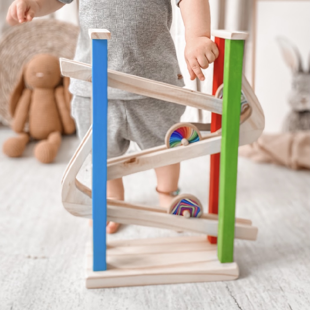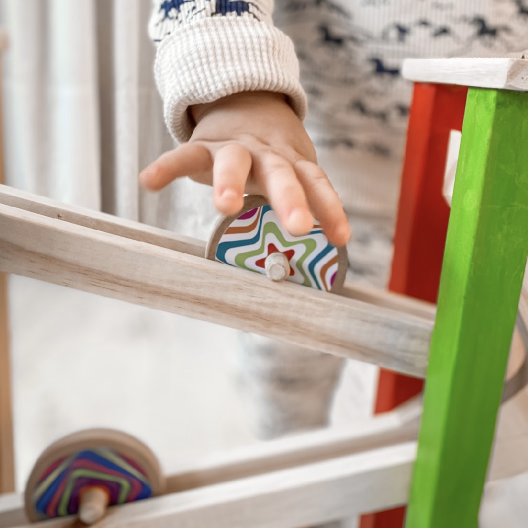 Juguete de madera pensada para el acompañamiento del desarrollo de motricidad fina y concentración.