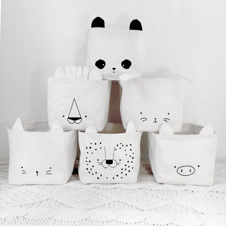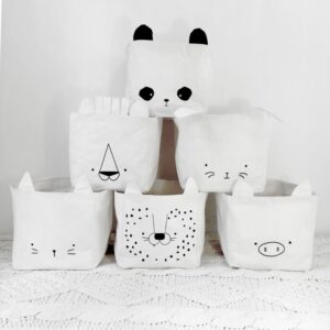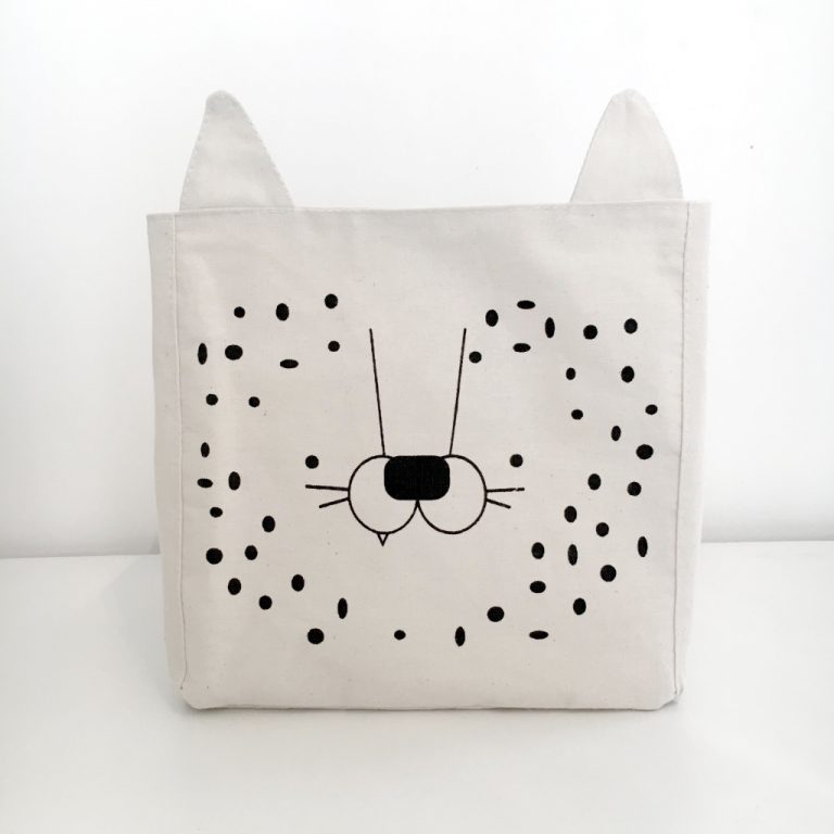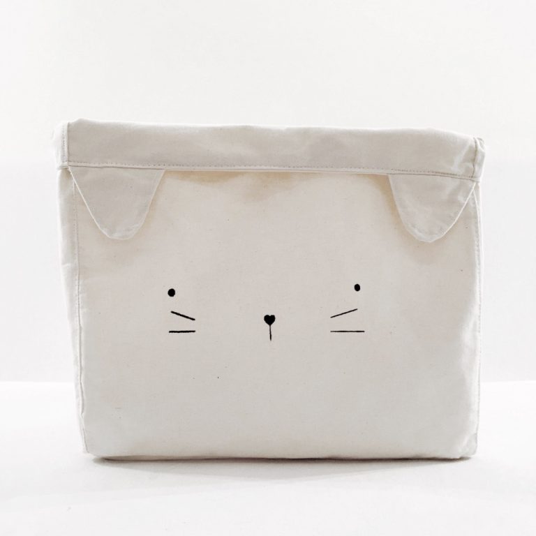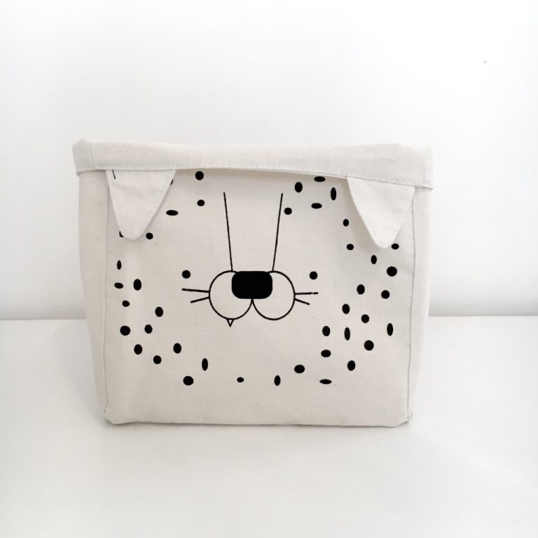 Baskets Friends – Cestos de guardado realizados en lona de algodón color crudo, estampado con serigrafía color negro.
