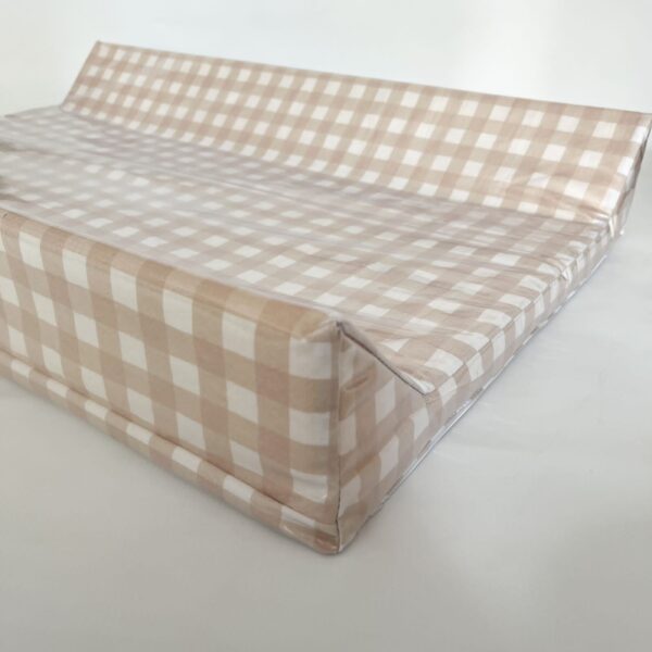 Cambiador de cuna anatómico con aletas, realizado con textiles 100% algodón y plastificado. Relleno con goma espuma.