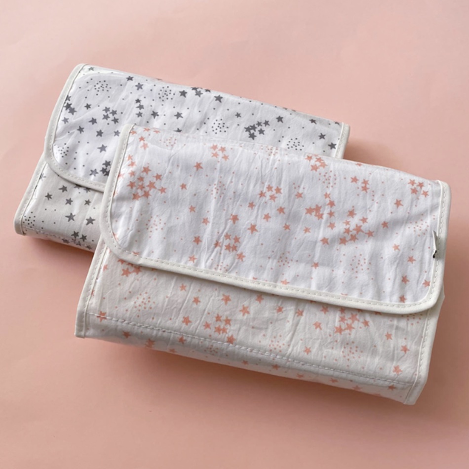Cambiador portátil estampado de diferentes colores. Plastificado por fuera e impermeable por dentro.