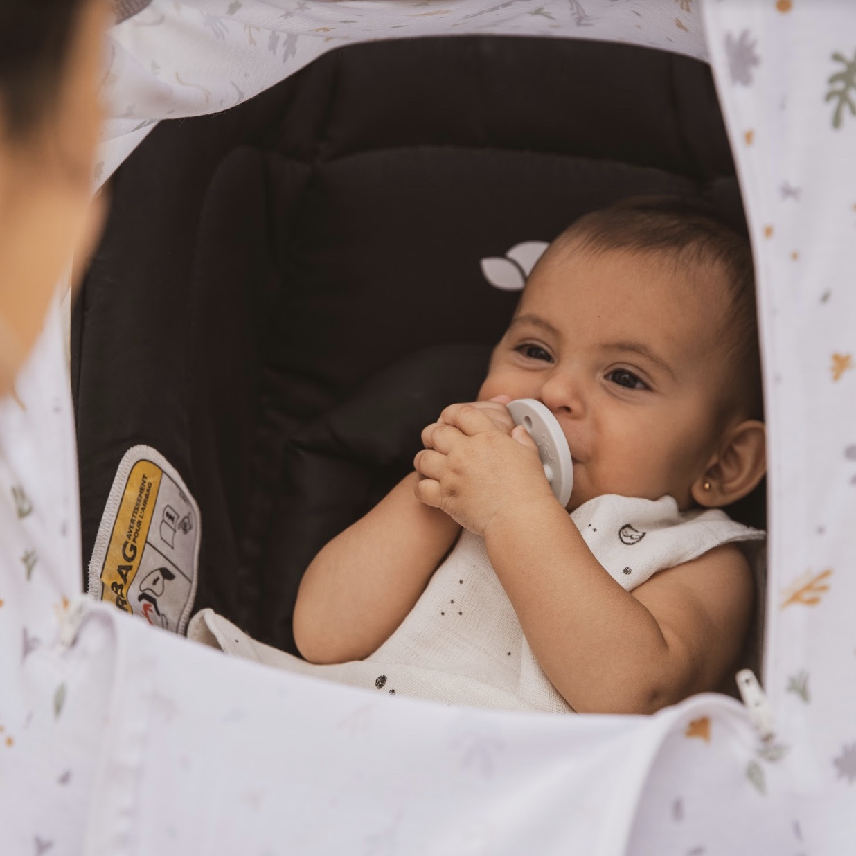 El Canopy cubre huevito está diseñado para uso supervisado. Nunca dejes a tu bebe solo haciendo uso del mismo. Evita que tu bebé duerma en el huevito cuando no es durante un viaje en auto. Utiliza el huevito con el arnes de sujecion bien colocado y por periodos inferiores a 30 minutos.