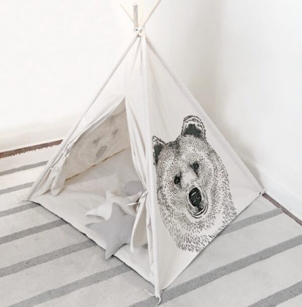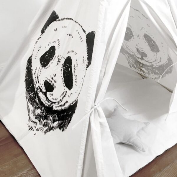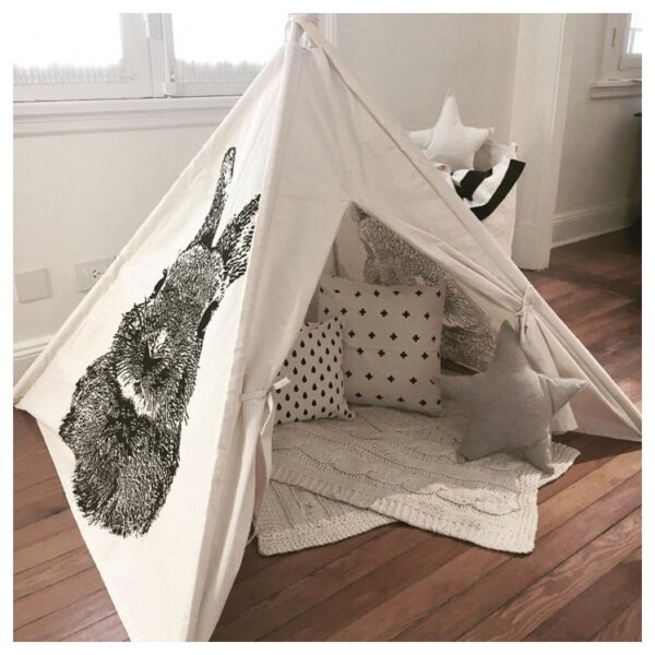 Carpita para jugar. Realizada en lona de algodón color cruda. Detalles y estampa bunny en color negro