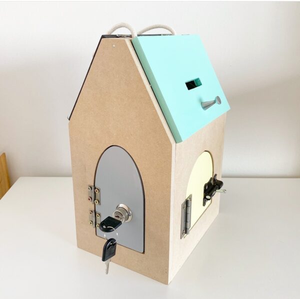 Casita didáctica con 6 aberturas diferentes, para que los chicos exploren y se diviertan!