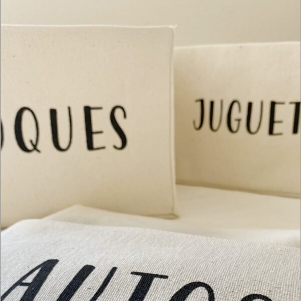 Contenedor realizado en lona gruesa, tipo cabeza de toro, 100% algodón. Estampado con tintas al agua.