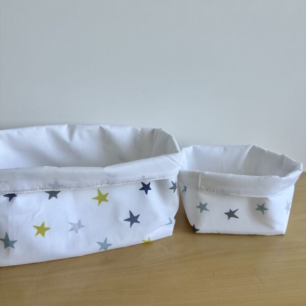 Puede quedar doblado en el borde, o totalmente extendido. Ideal para guardar accesorios, artículos de escritorio o como pañalera.
