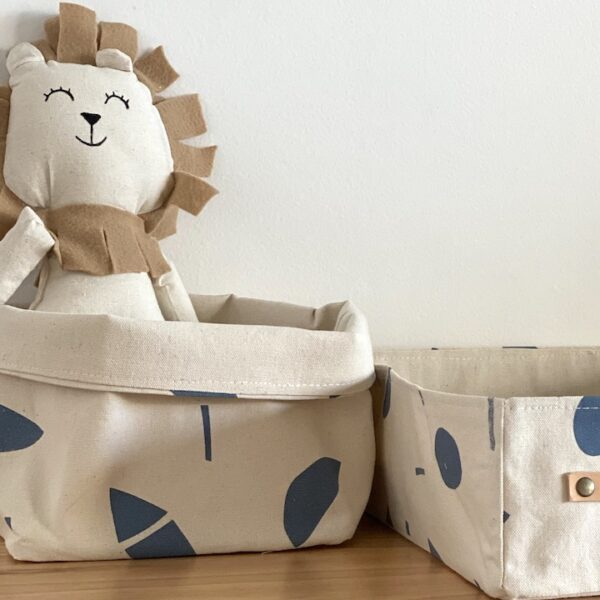 Contenedores confeccionados en canvas 100% algodón. Exterior estampado e interior en canvas liso 100% algodón.