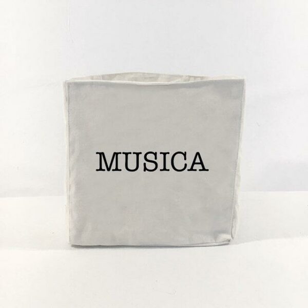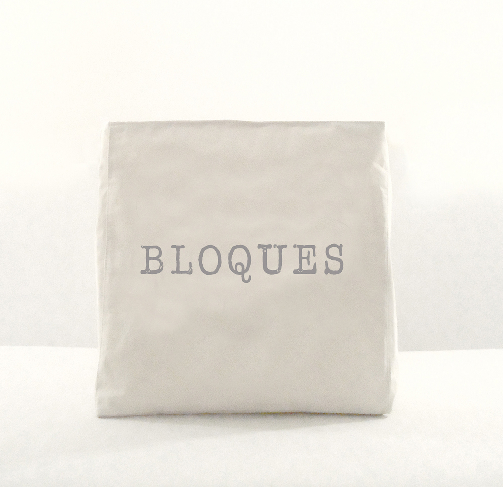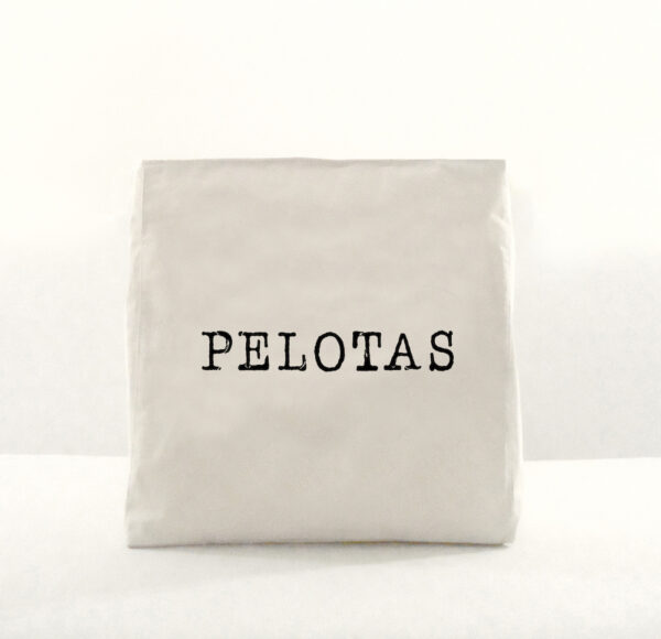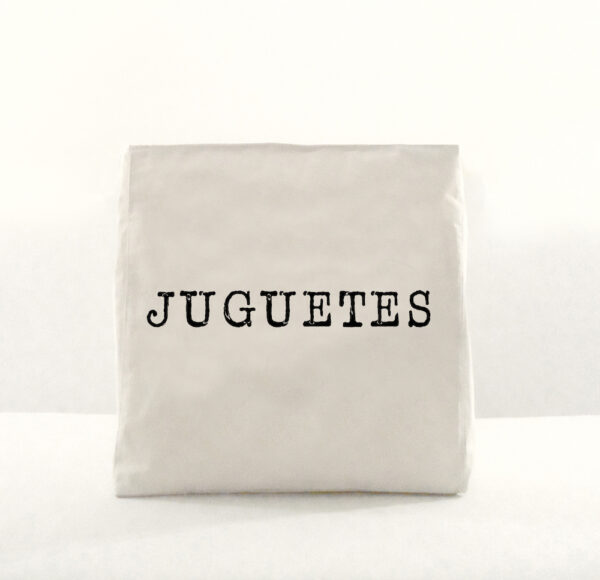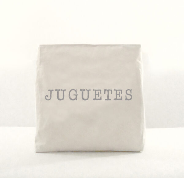 Contenedores realizados en lona de algodón color crudo. Estampados con serigrafia en color negro o gris