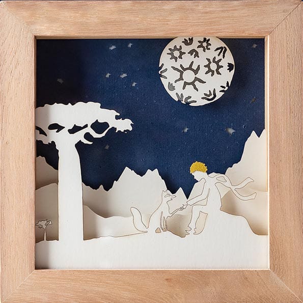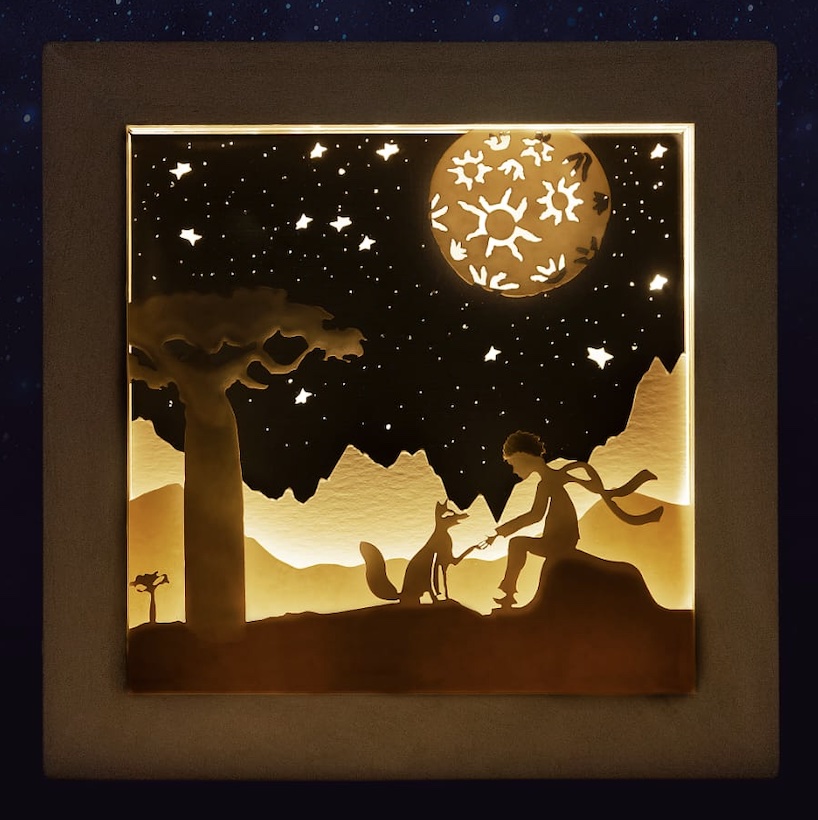 Cuadro con luz realizado con capas de papel calado que dan sensación 3D.