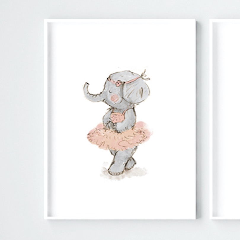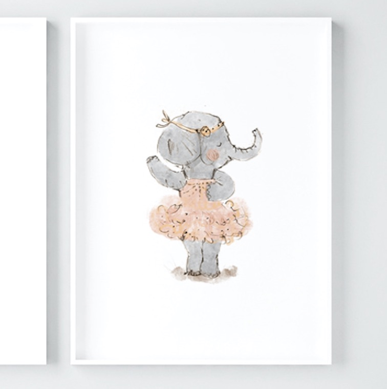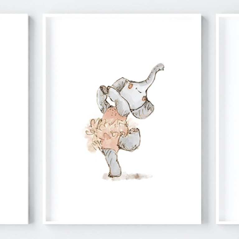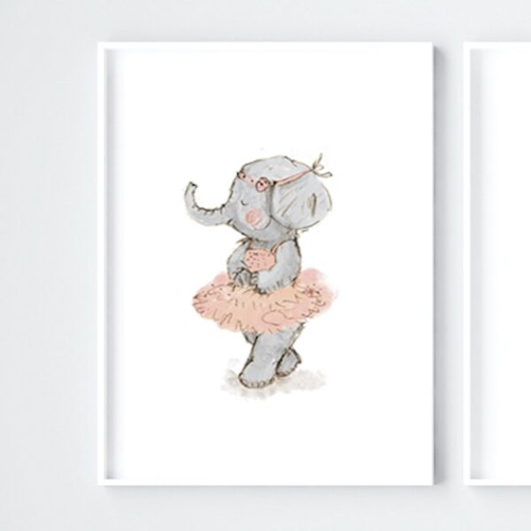 Laminas de la Serie Elefante Bailarinas – diseño exclusivo! Incluye marco color madera.