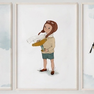 Laminas de la Serie «El aviador» – diseño exclusivo! Incluye marco color madera.