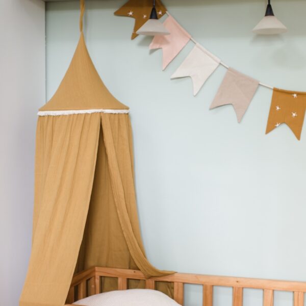 Dosel realizado en gasa 100% algodón, color crudo, rosa, gris claro, menta o avellana.