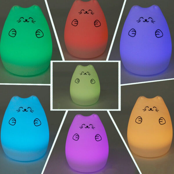 Lámpara velador de silicona con forma de gatito, recargable, con luz led que ofrece la posibilidad de cambiar de color.