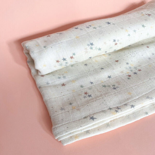 Realizada en gasa tejida doble 100% algodón, con estampa estrellitas
