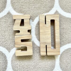 Trae 12 piezas de madera, cada una con un numero del 1 al 10 (hay dos números 1 y dos números 5). La idea de este juego es apilar los números de tal forma que coincida con otro. Ej: apilando 2 y 5, tengo la misma altura que el 7; o apilando el 2 y el 4, tengo la misma altura que el 6.
