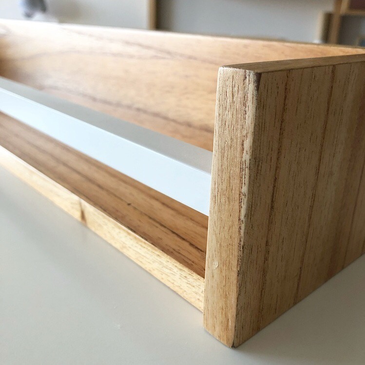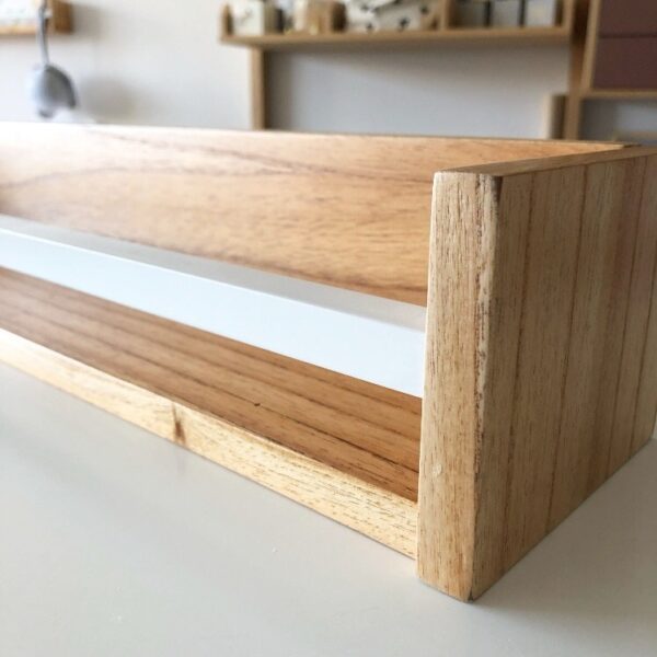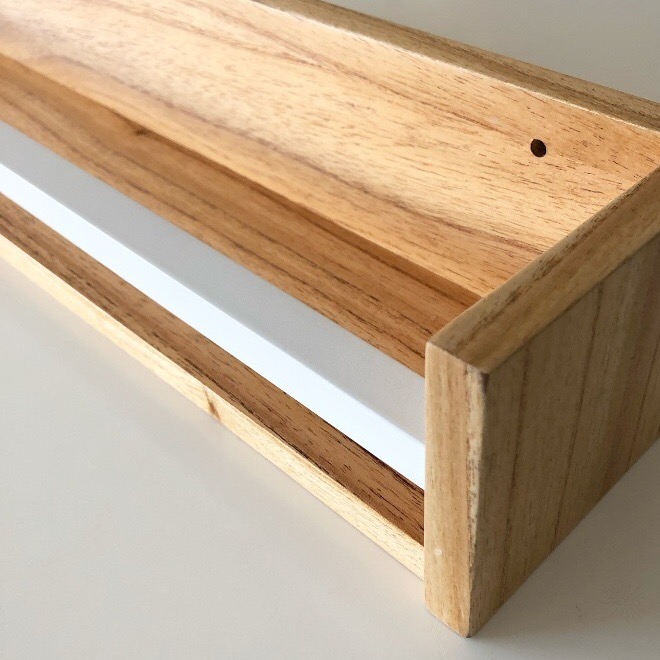 Repisa realizada en madera paraíso con barral laqueado en blanco.
