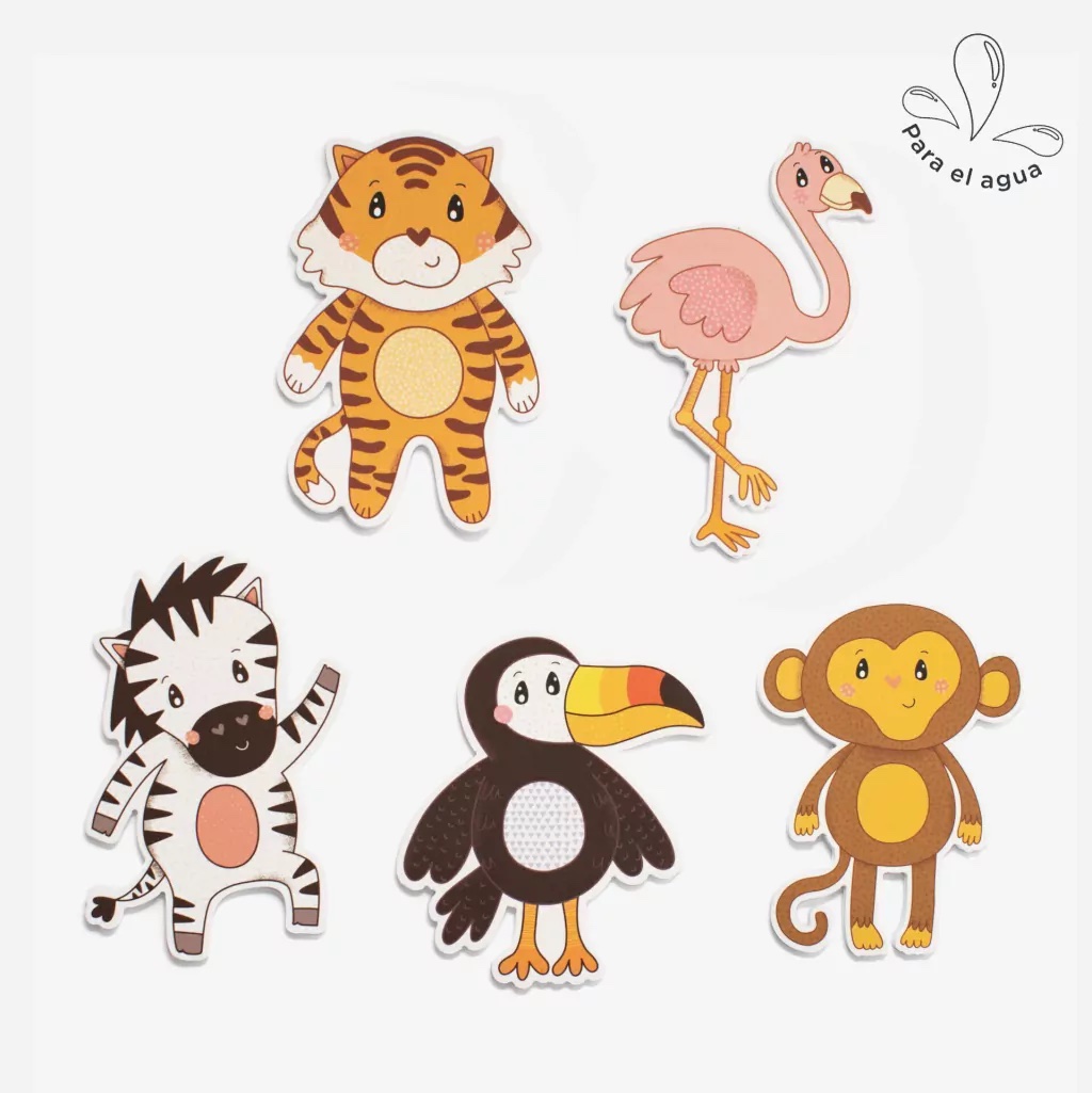 Animalitos de goma eva de 5 mm. Ideal para jugar con agua. Se adhiere a los azulejos, vidrios o bañera con un poco de agua.