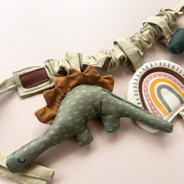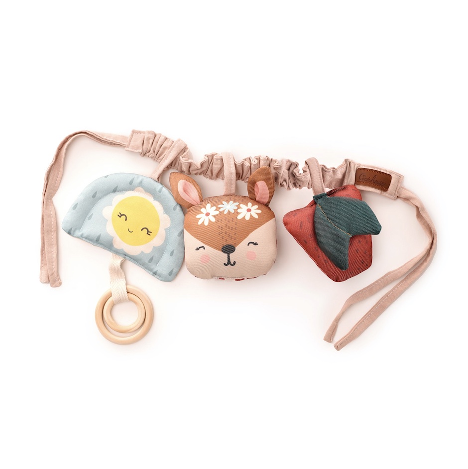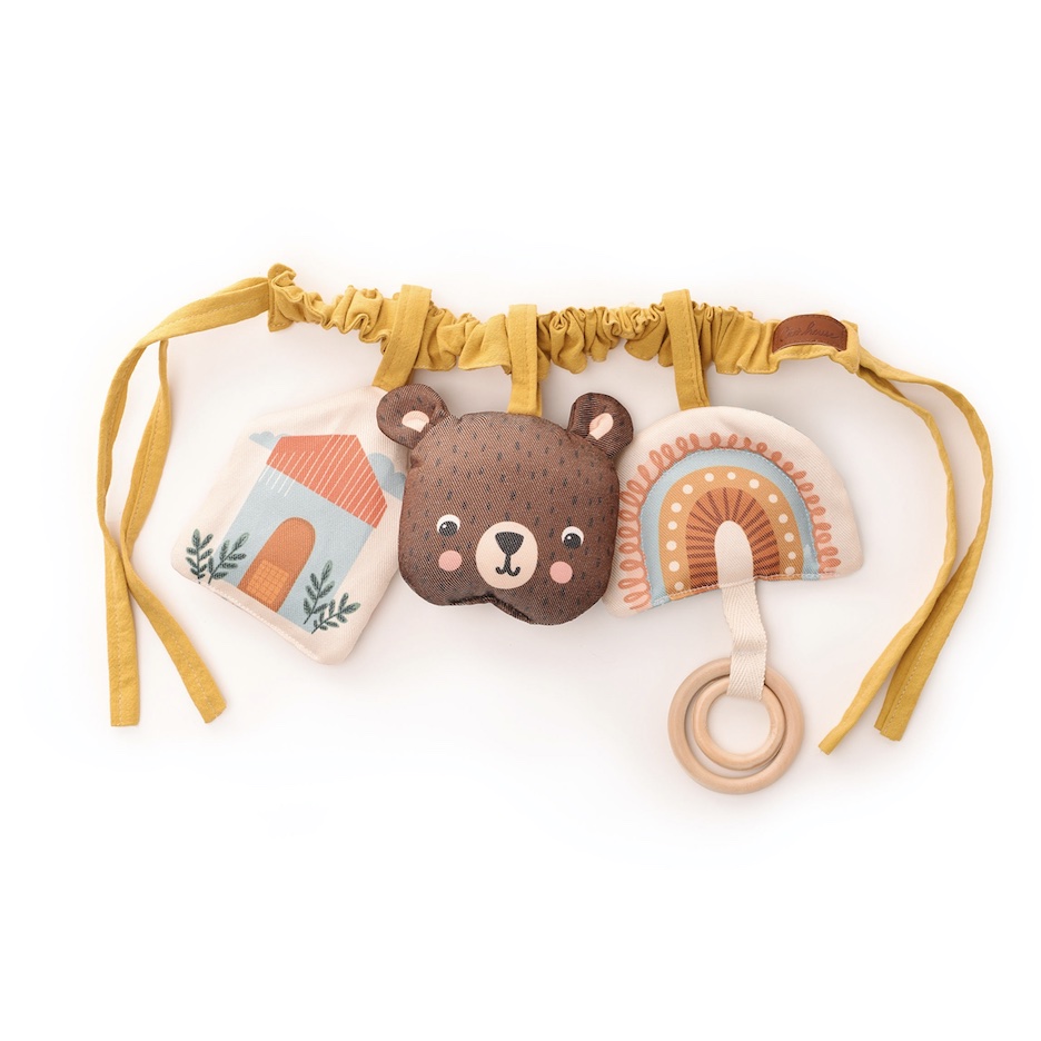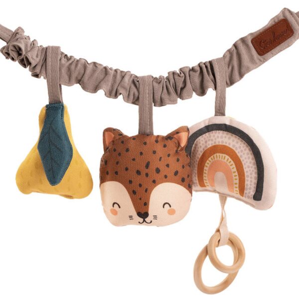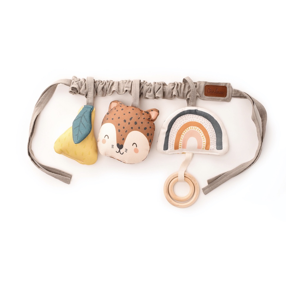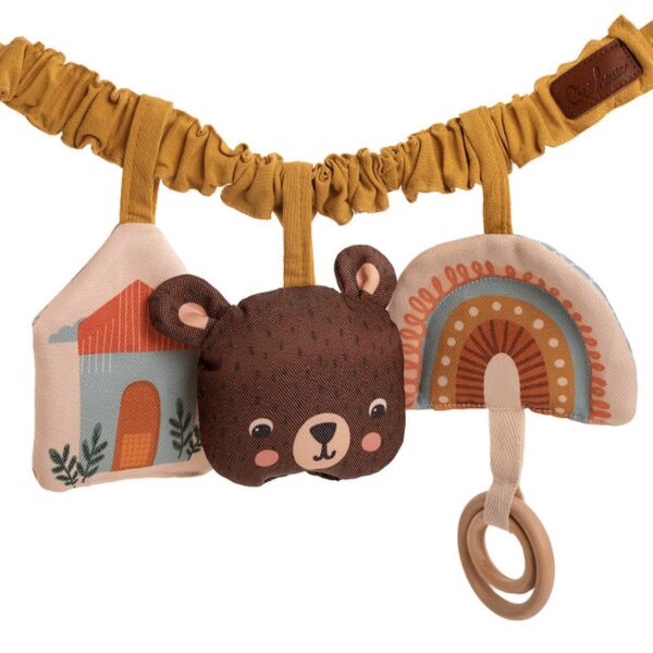 Sonajeros colgantes para el cochecito o cuna. Contiene sonido sonajero (cascabel/cajita sonajero y papel) para que tu bebé explore. Vienen presentados en una tira de elástico forrada adaptable a cualquier medida de barral de cochecito y también podés atarlo al lateral de la cuna. Es ideal para bebés que ya se sientan solitos y solitas.