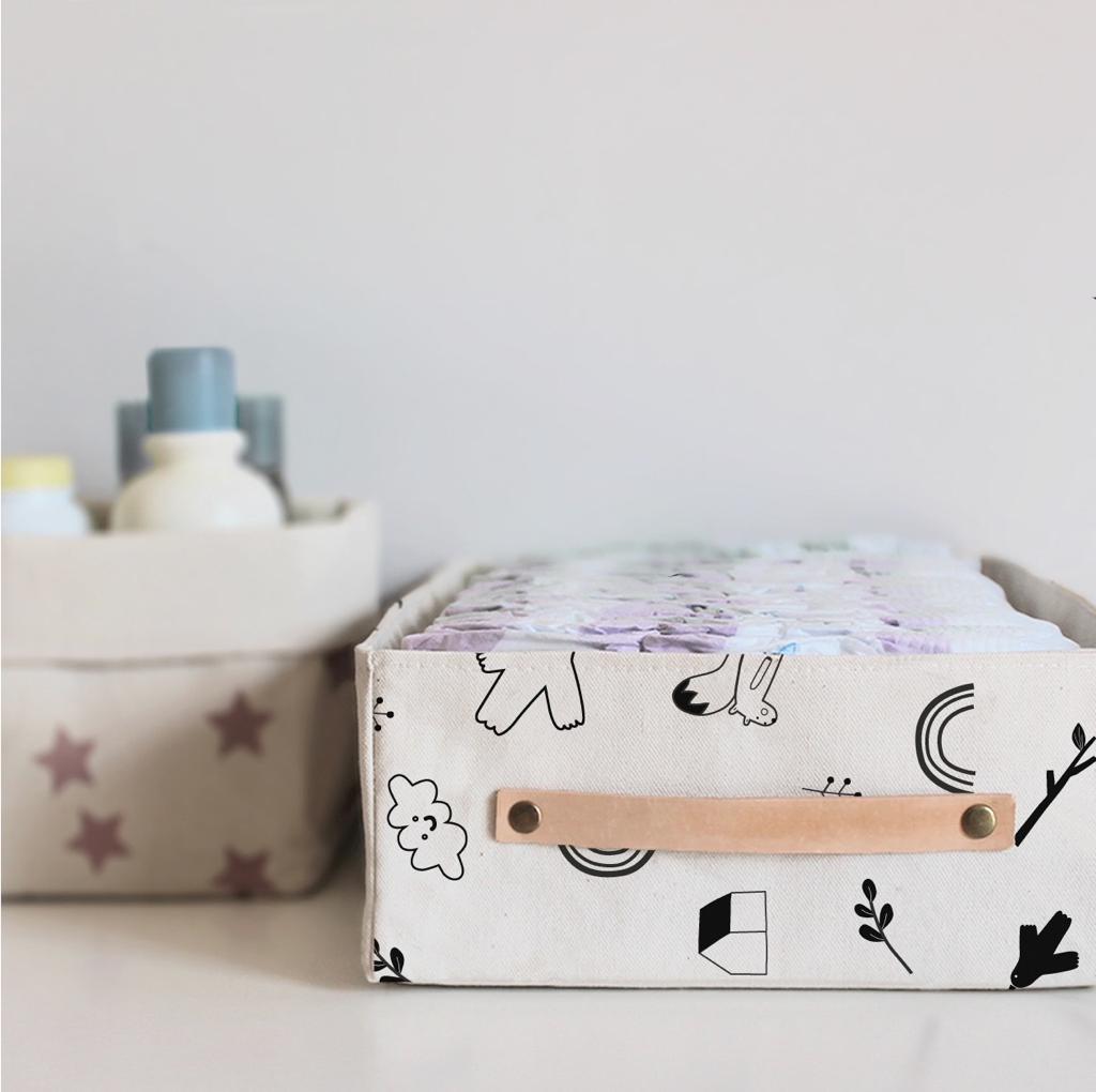 Boxes confeccionados en canvas 100% algodón. Exterior estampado e interior en canvas liso 100% algodón.